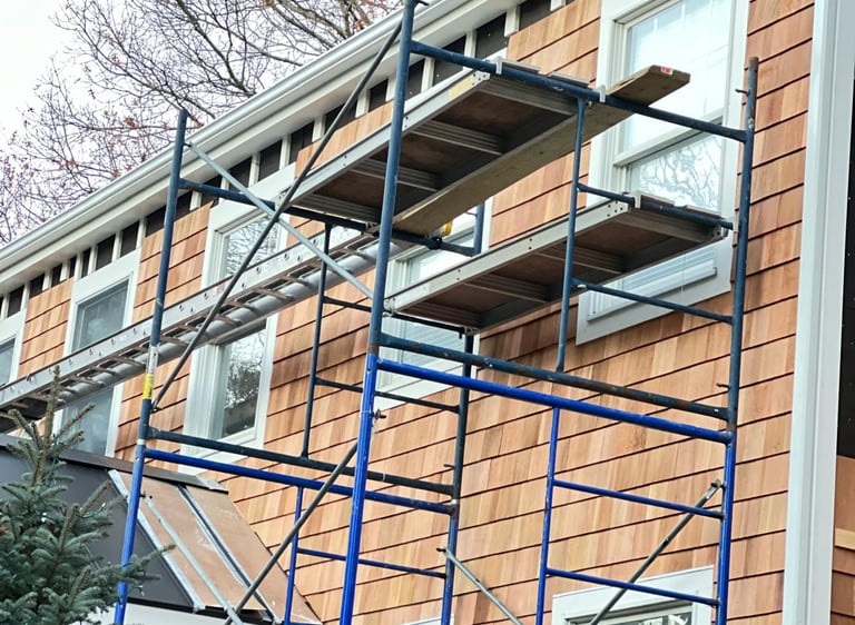 Installation of siding in wood and composite materials to improve aesthetics and energy efficiency.